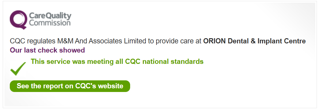 Like all dental practices in the UK, we are regulated by the Care Quality Commission (CQC), who ensure the highest standards are met.